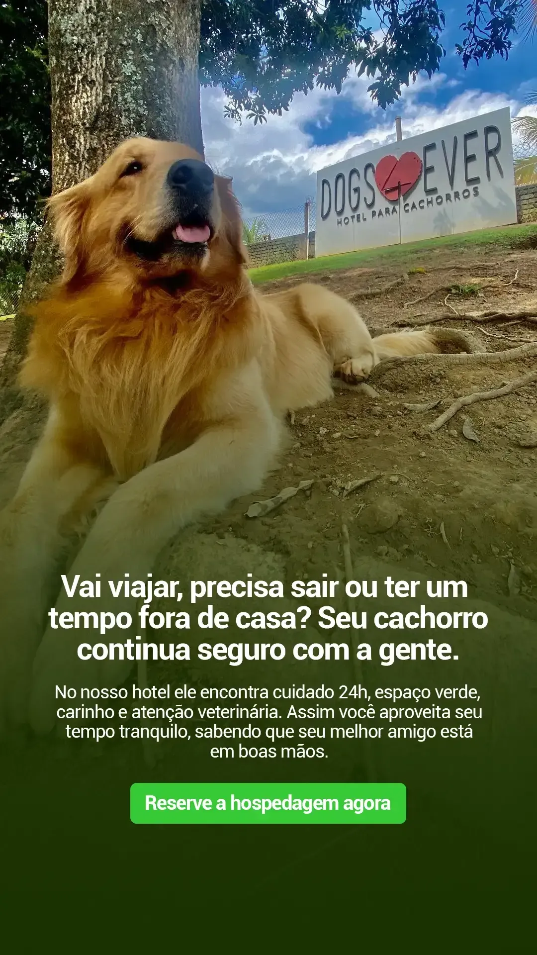 Hospedagem 24h, com rotina, cuidado e canis individuais.